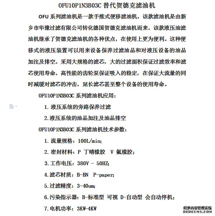 OFU10P1N3B03C替代贺德克滤油机