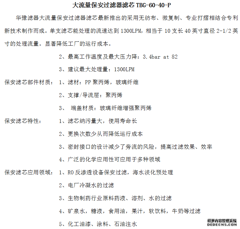 大流量保安过滤器滤芯TBG-60-40-P
