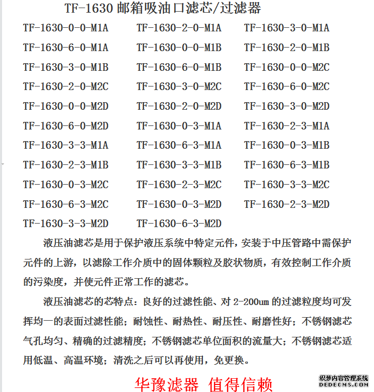 TF-1630 吸油口滤芯/过滤器